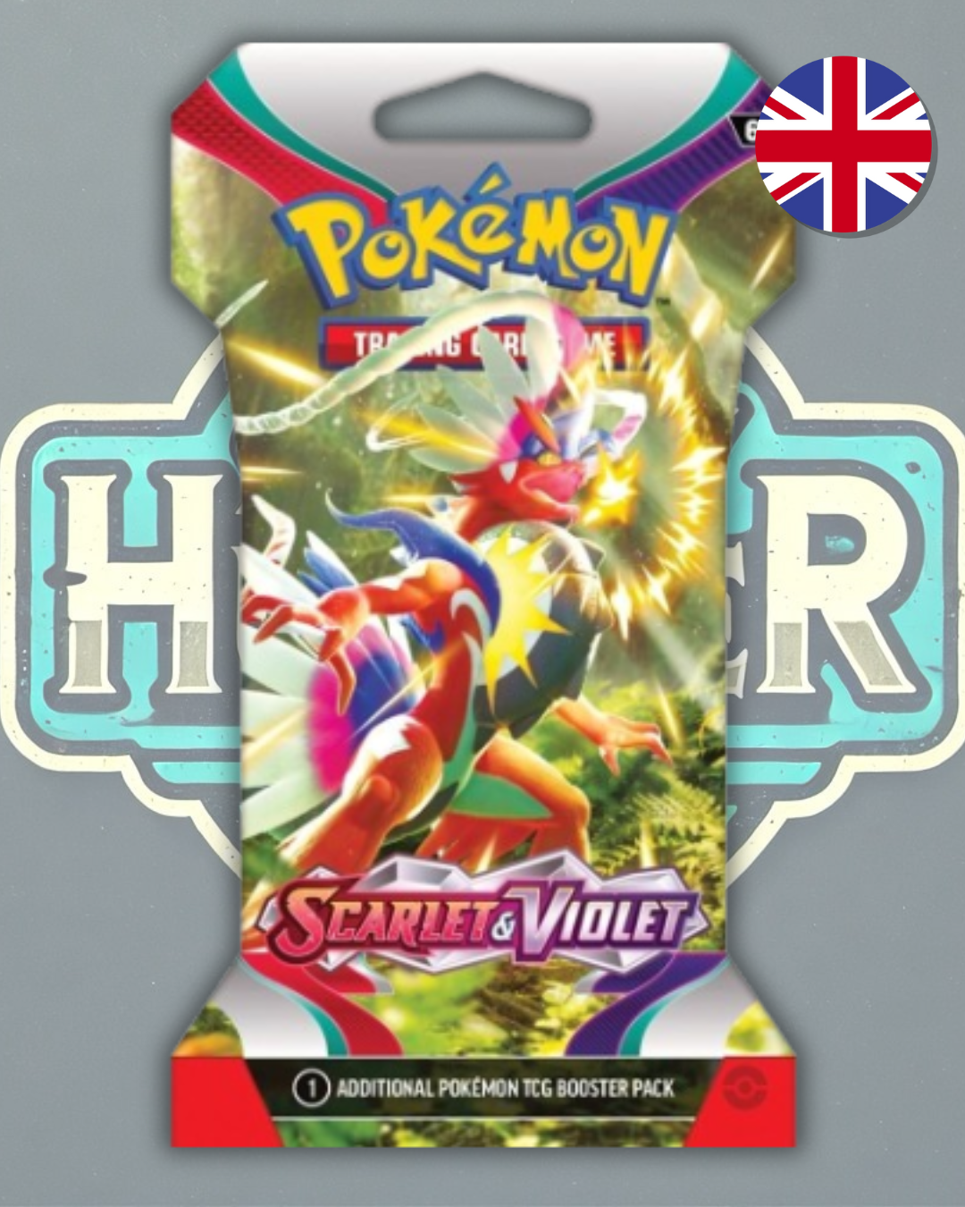 Un sobre sellado del conjunto base Pokémon Escarlata y Violeta que contiene 10 cartas aleatorias de la colección en inglés.