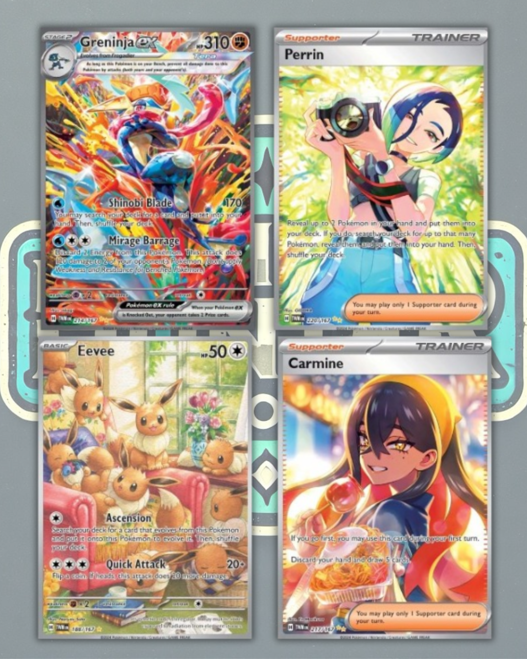 Estas cuatro increíbles cartas pueden utilizarse indistintamente con Máscara del Ogro. Esta carta Objeto te permite cambiar un Ogerpon ex en juego por uno de tu pila de descartes, ¡lo que significa que tu oponente tendrá que jugar alrededor de cuatro Pokémon diferentes simultáneamente! Sea cual sea la máscara que uses, Ogerpon estará ahí para ayudarte.